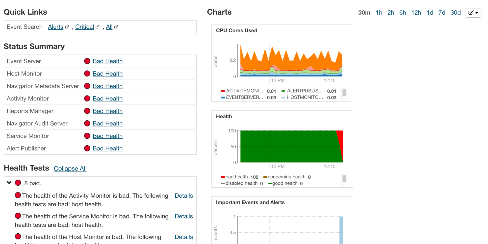 The service health for Cloudera Management Service might, however, show as red: