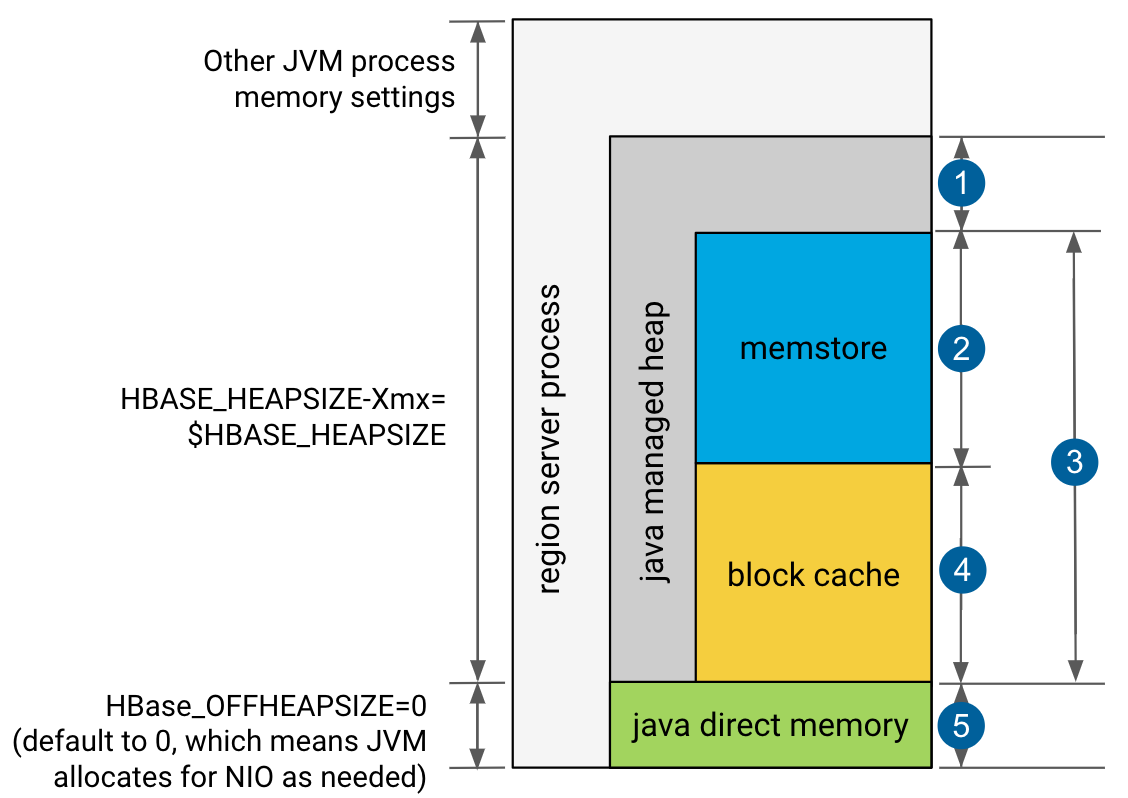 - hbase.regionserver.global.memstore.size + hfile.block.cache.size ≤0.80, which means 80%