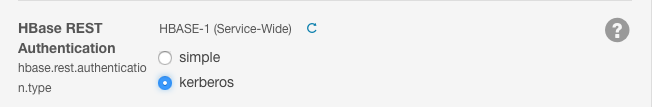 However, you must manually configure the HBase REST service for Kerberos (it currently uses Simple authentication by default, instead of Kerberos). See Configure HBase REST Server for Kerberos Authentication for details.