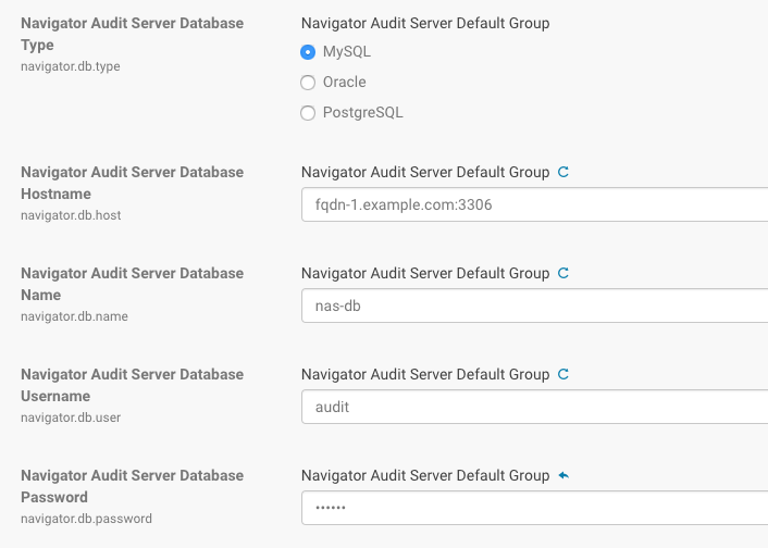 - In the Navigator Audit Server section, enter the details of your database instance:
