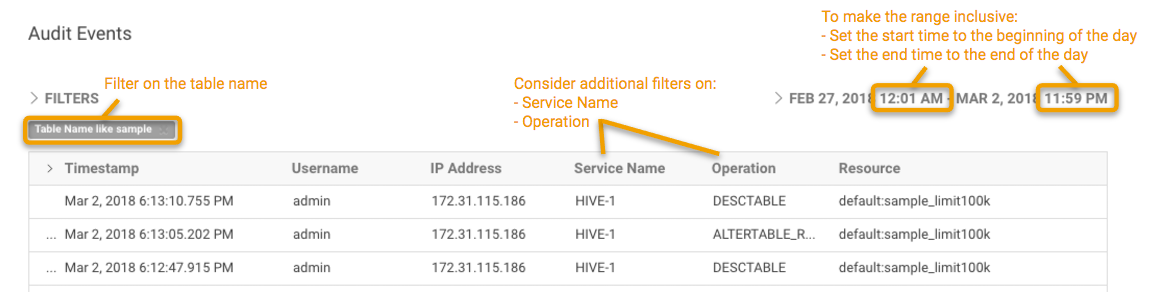 - By Service Name. For example, to show all Hive operations, use Service Name like hive.