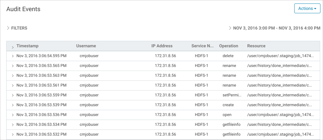 - Limit the list of Audit Events to only those for the /user/hive/warehouse directory: