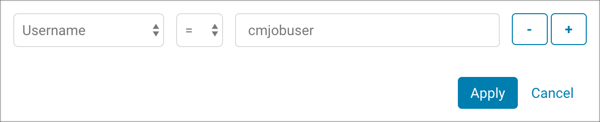 - Click Apply. The filter is applied to the audit events and the list displays only those events for the selected username.