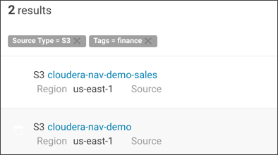 An effective catalog of cluster data supports self-service data discovery for an organization. For example, business users can find all the data associated with particular projects by looking for meaningful labels without needing to know the low-level structures within the cluster. Finding all the tables or files relevant for a specific project in a given department can be as simple as applying filters to the Search page. For example, to start exploring the finance team's data stored in an organization's Amazon Simple Storage Service (S3), authorized users can select the source type and the tag filters:
