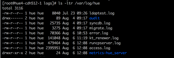 Tip: You can view these logs in Hue at http://hueserver:port/logs|