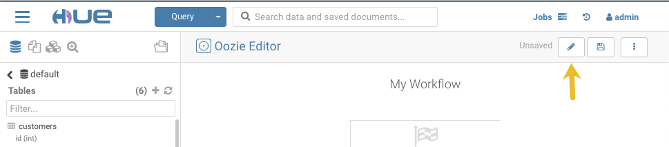 Click the Edit icon in the upper right corner of the Oozie Editor page: