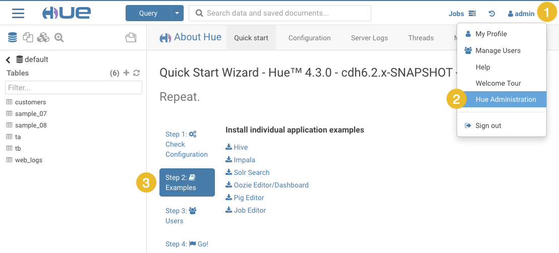 - Log on to Hue as the administrator.