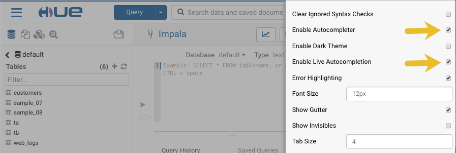 How to Enable SQL Editor Autocompleter in Hue