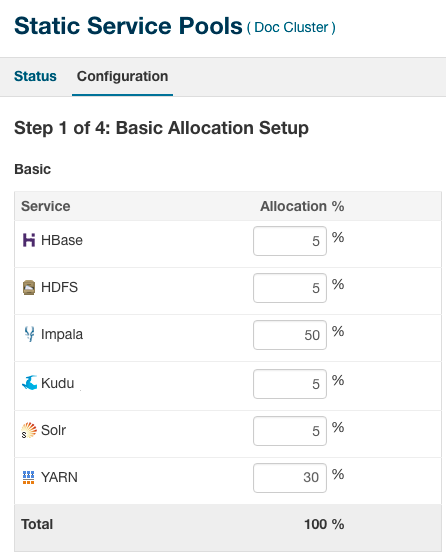 The following is a sample configuration for Static Service Pools shown in Cloudera Manager.
