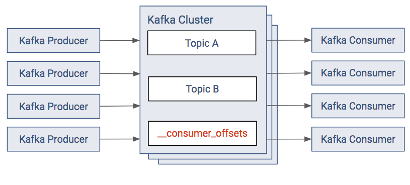 The default consumer model provides the metadata for offsets in the Kafka cluster. There is a topic named __consumer_offsets that the Kafka Consumers write their offsets to.