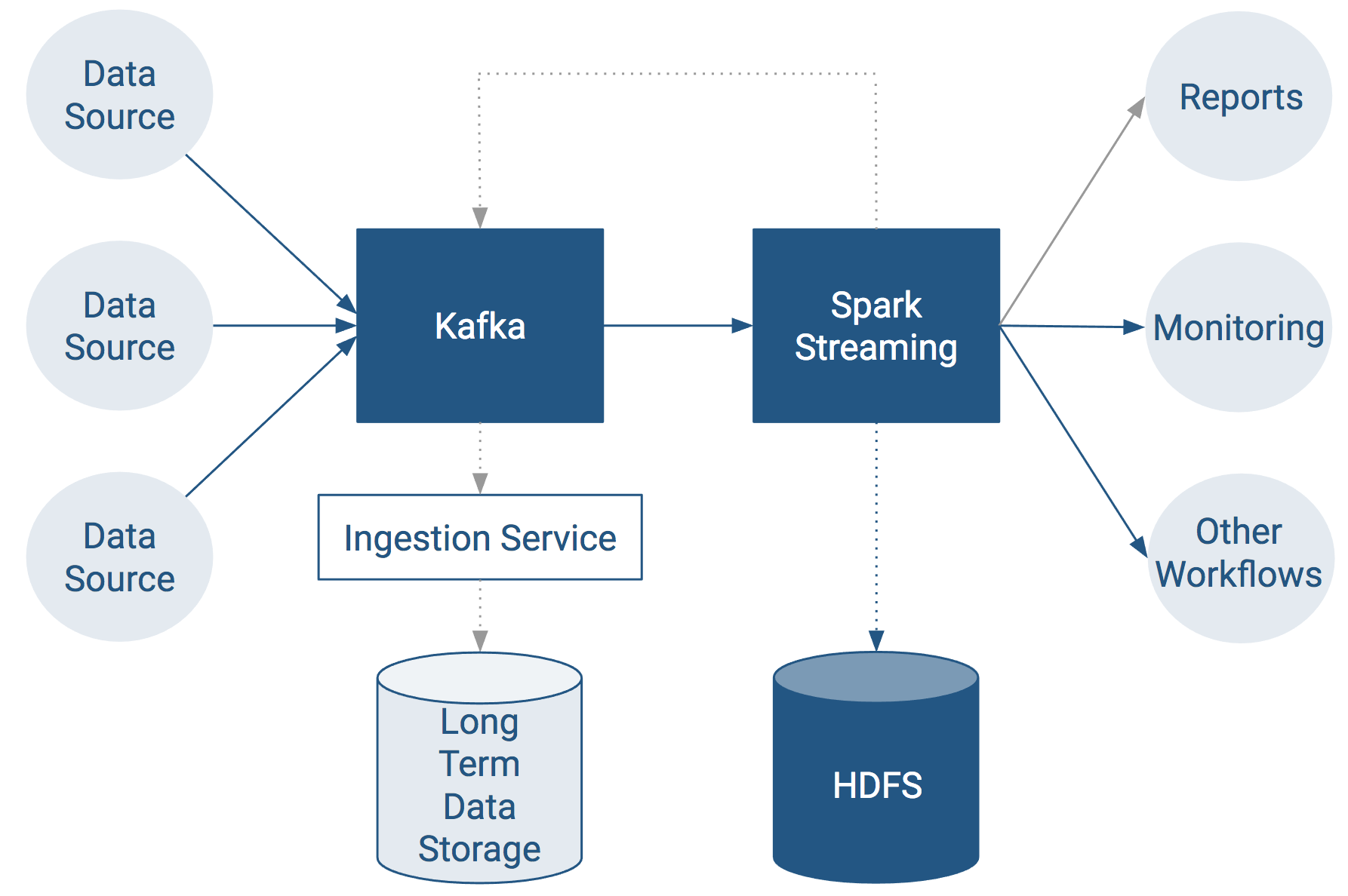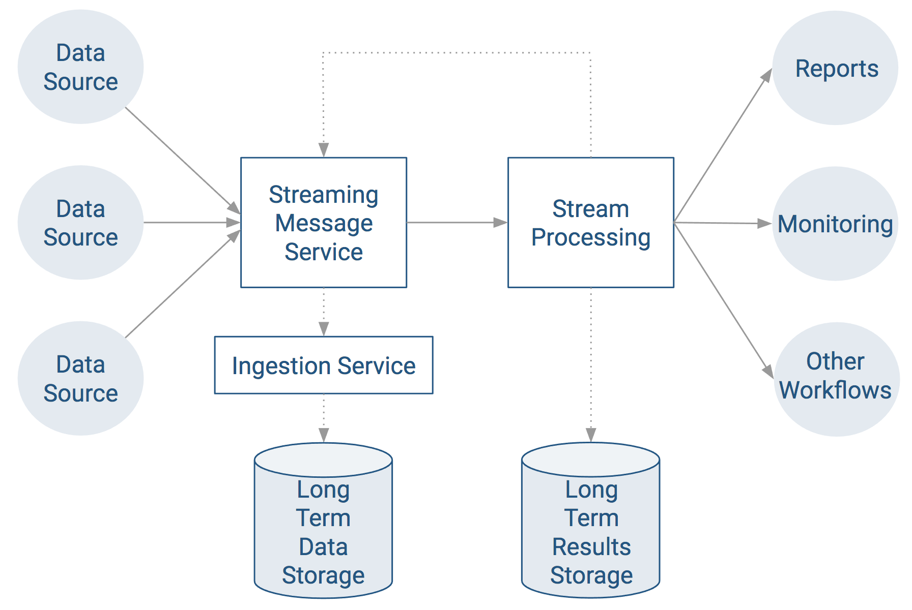 - The ingestion service usually saves older data to some form of long-term data storage.