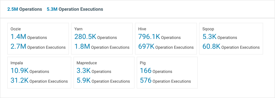 The Operations and Operation Executions area of the Dashboard shows the total number of operations and operation executions that occurred in the cluster for the specified period of time.