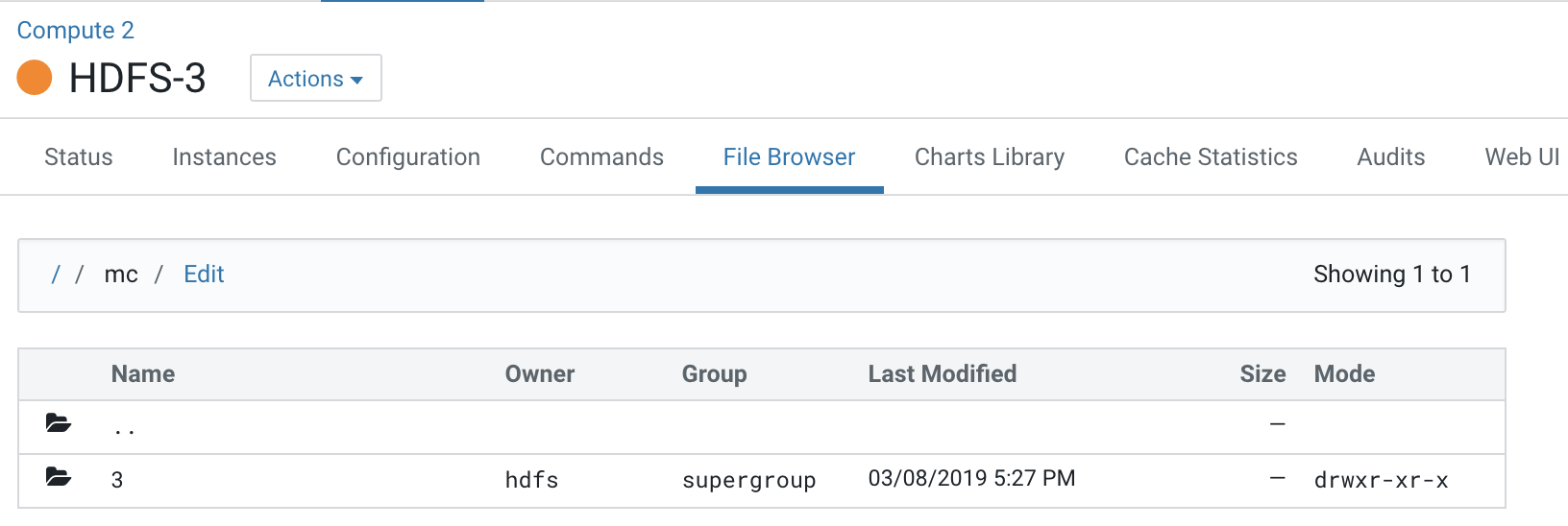 Note that folder 2 which is dedicated for the Compute 1 cluster is not visible to the Compute 2 cluster.